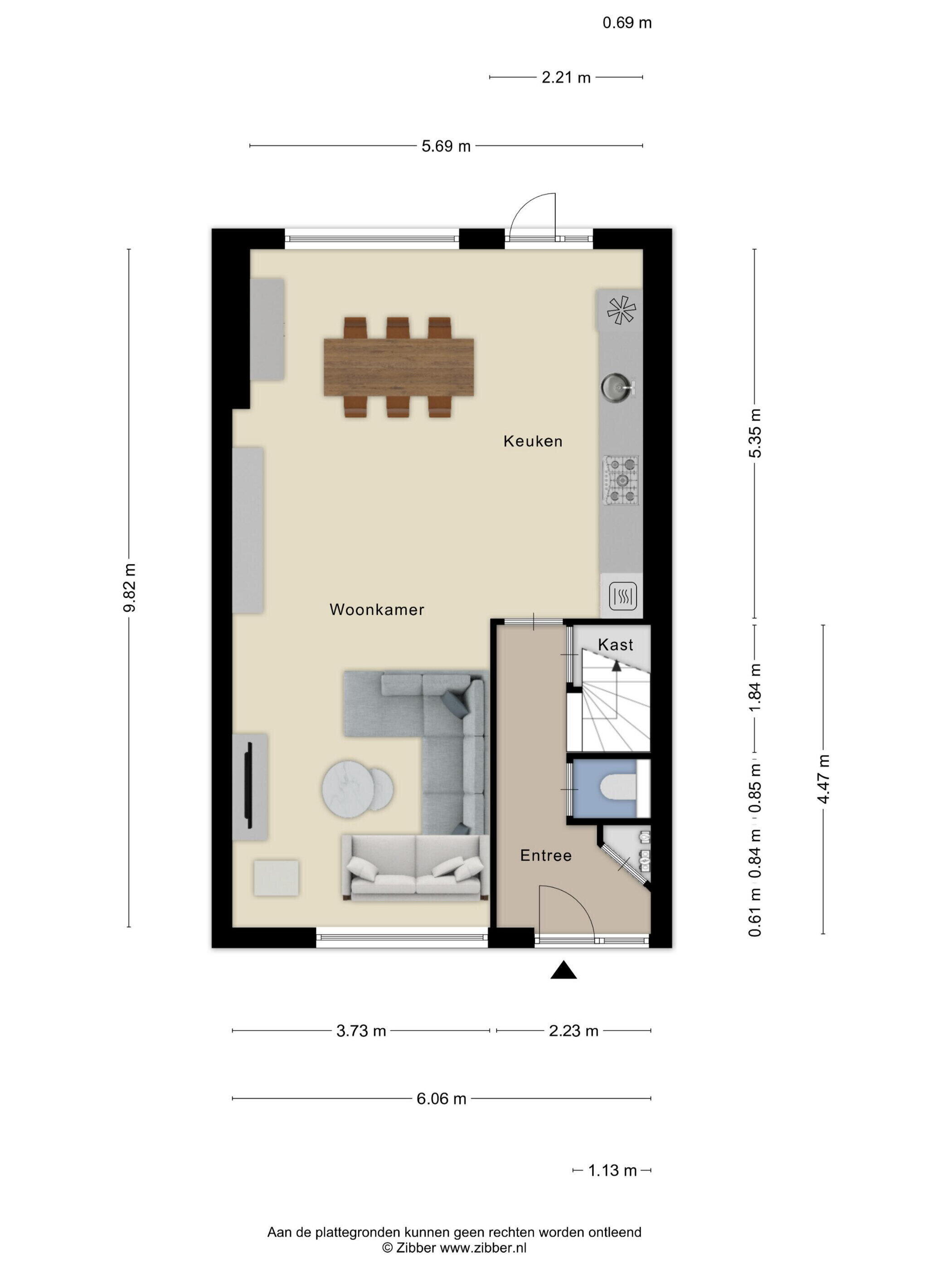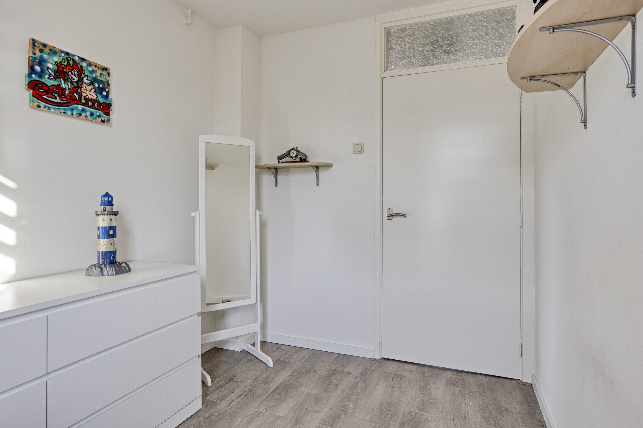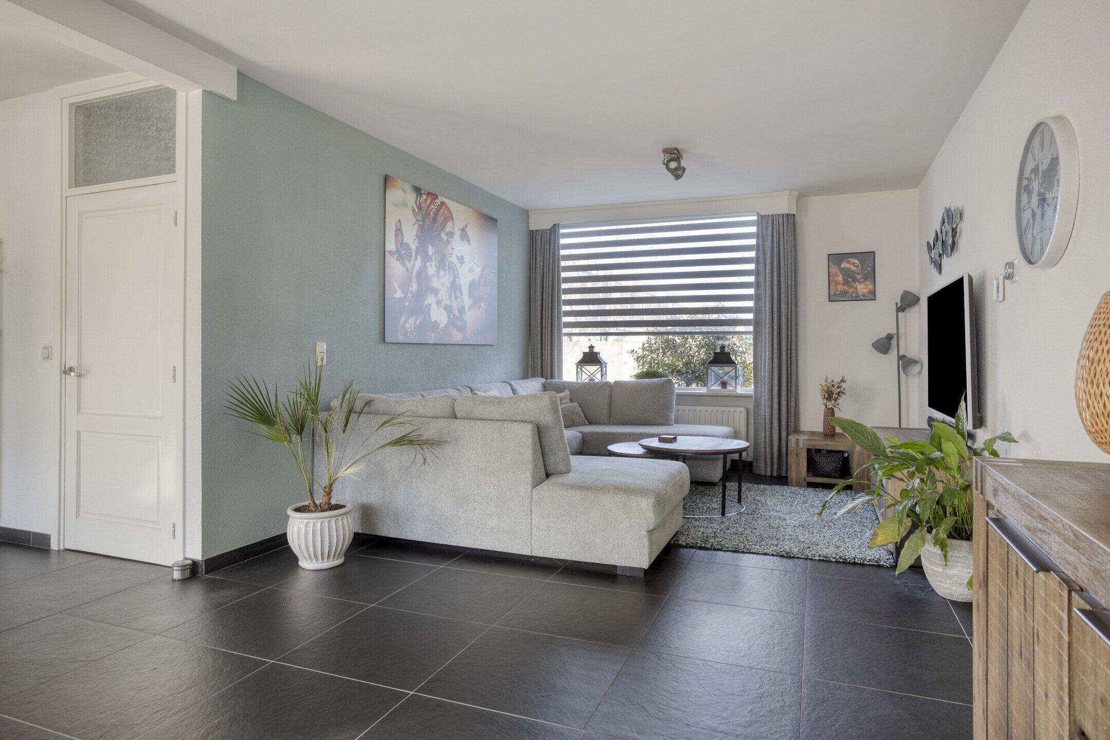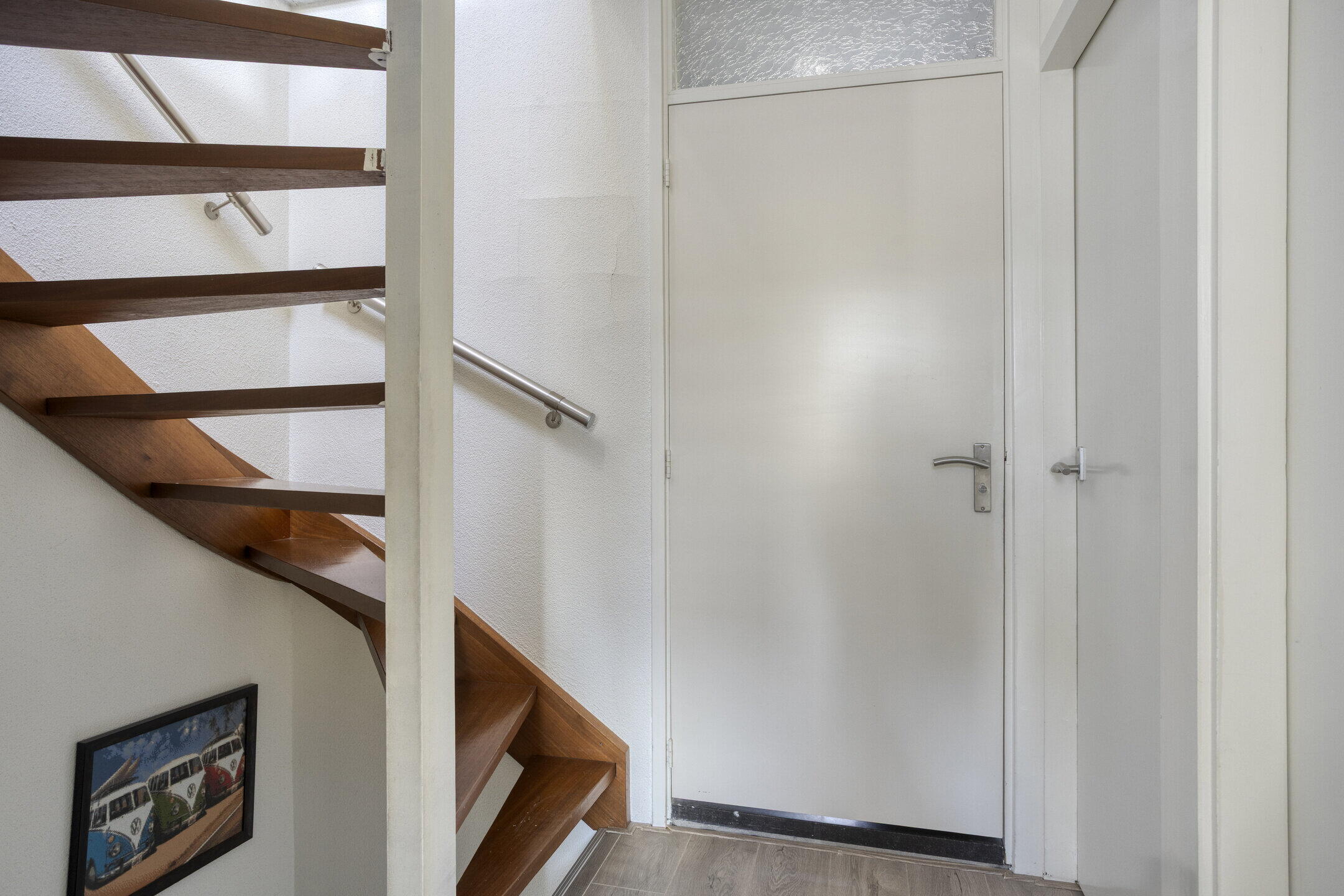 Parkeer je auto in de straat en loop mee naar binnen. Via de hal met meterkast, toilet en trapopgang kom je in de woonkamer.