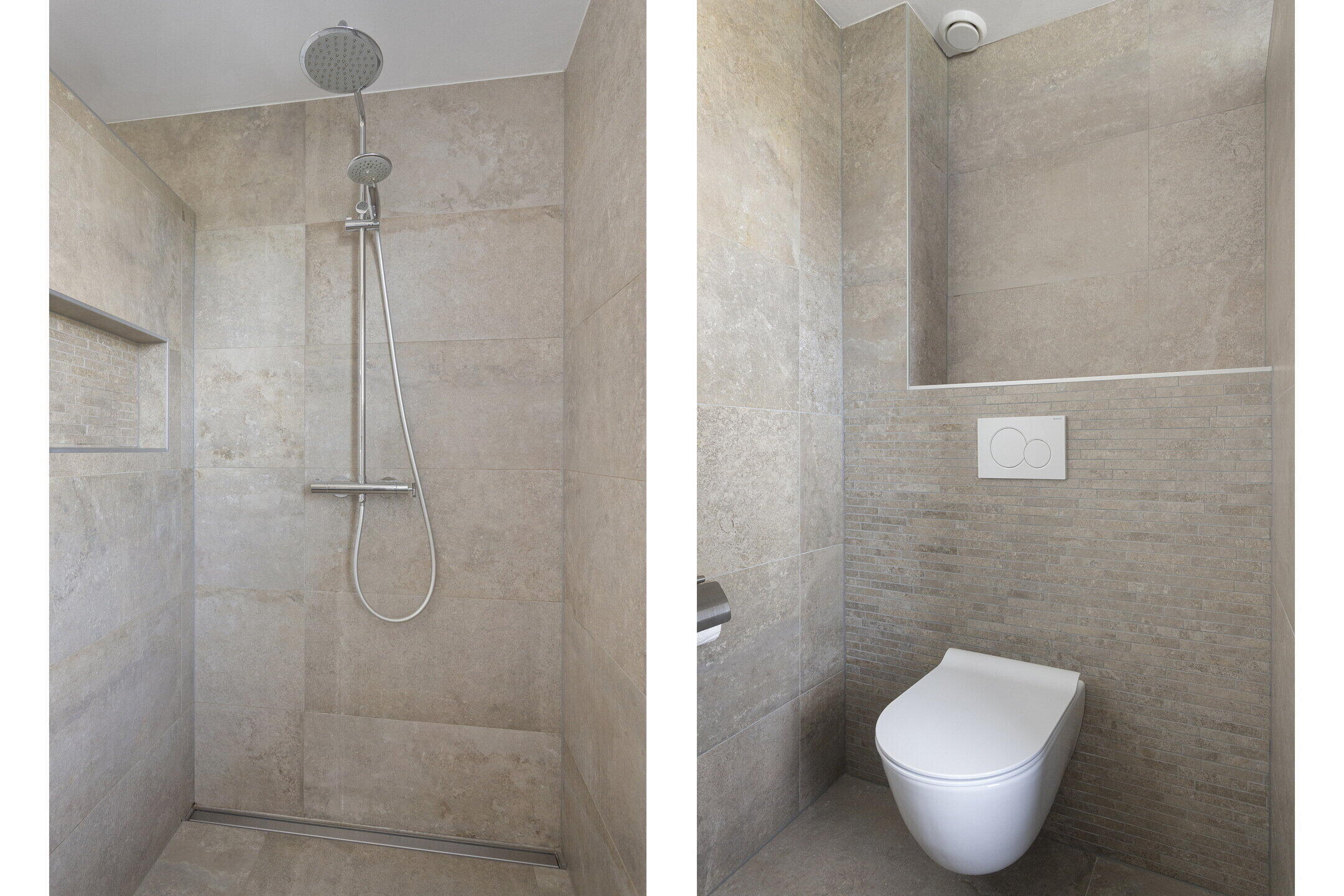 - Toilet, dubbele wastafel, wastafelmeubel, inloopdouche