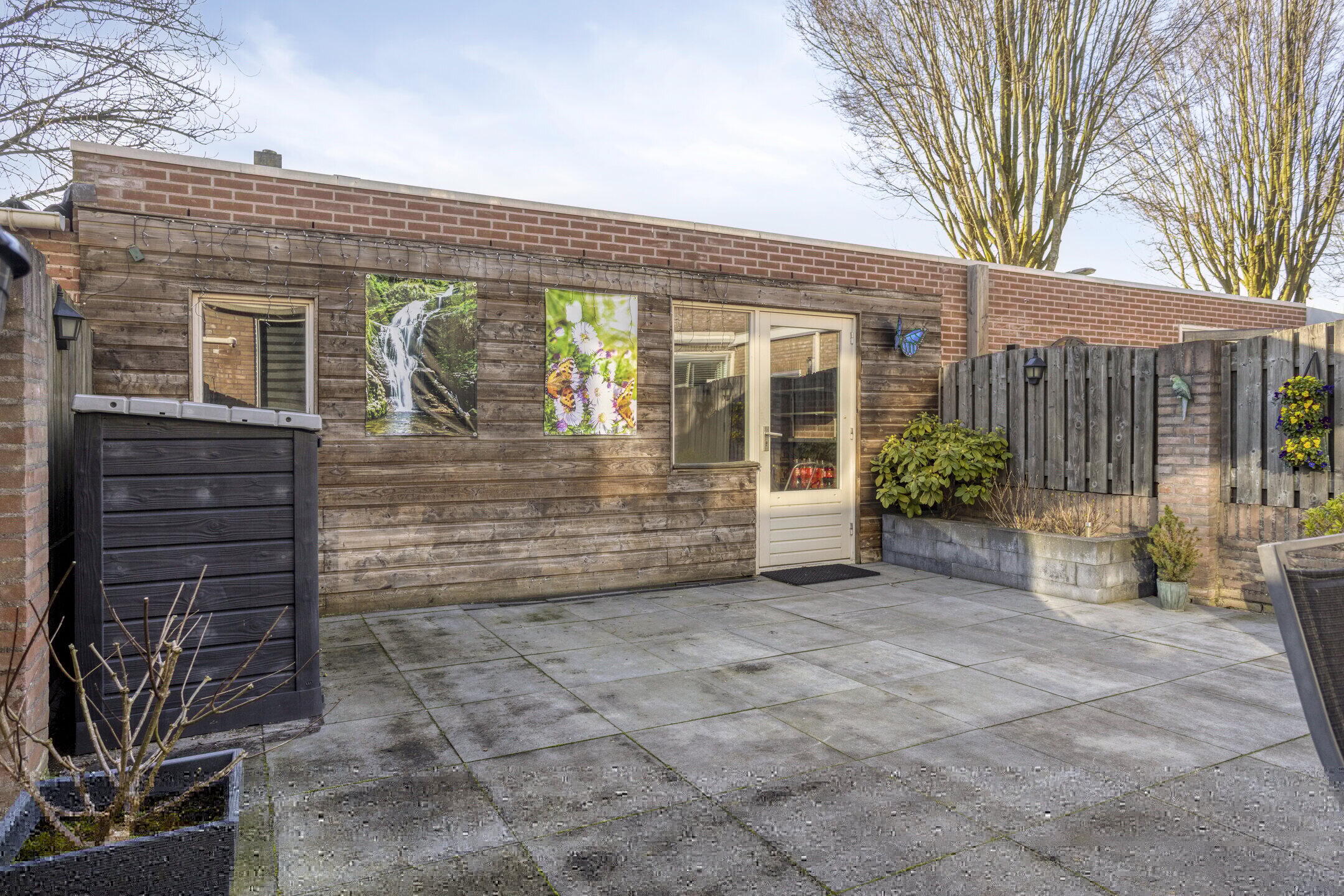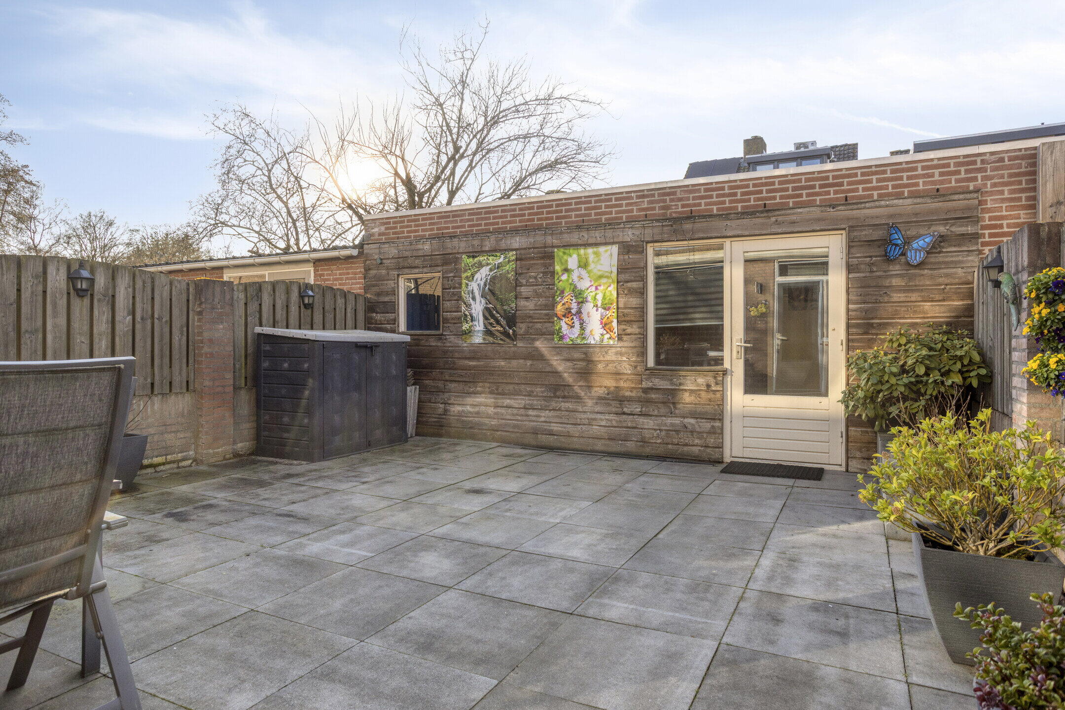 De achtertuin is onderhoudsvriendelijk aangelegd met grijze tegels en borders aan de zijkant. Dankzij de ligging op het westen geniet je hier volop van de middag- en avondzon. Achter in de tuin staat een praktische berging*voor fietsen en tuingereedschap en via de achterom bereik je eenvoudig de tuin.
